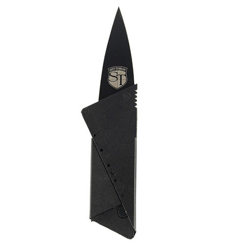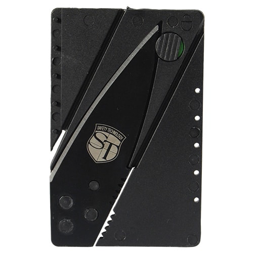 Safety Technology Credit Card Knife has the edge on subtle personal safety! The knife blade is discreetly hidden inside a black credit card with blade-lock. Pop the blade-lock and easily fold into a usable pocket knife!